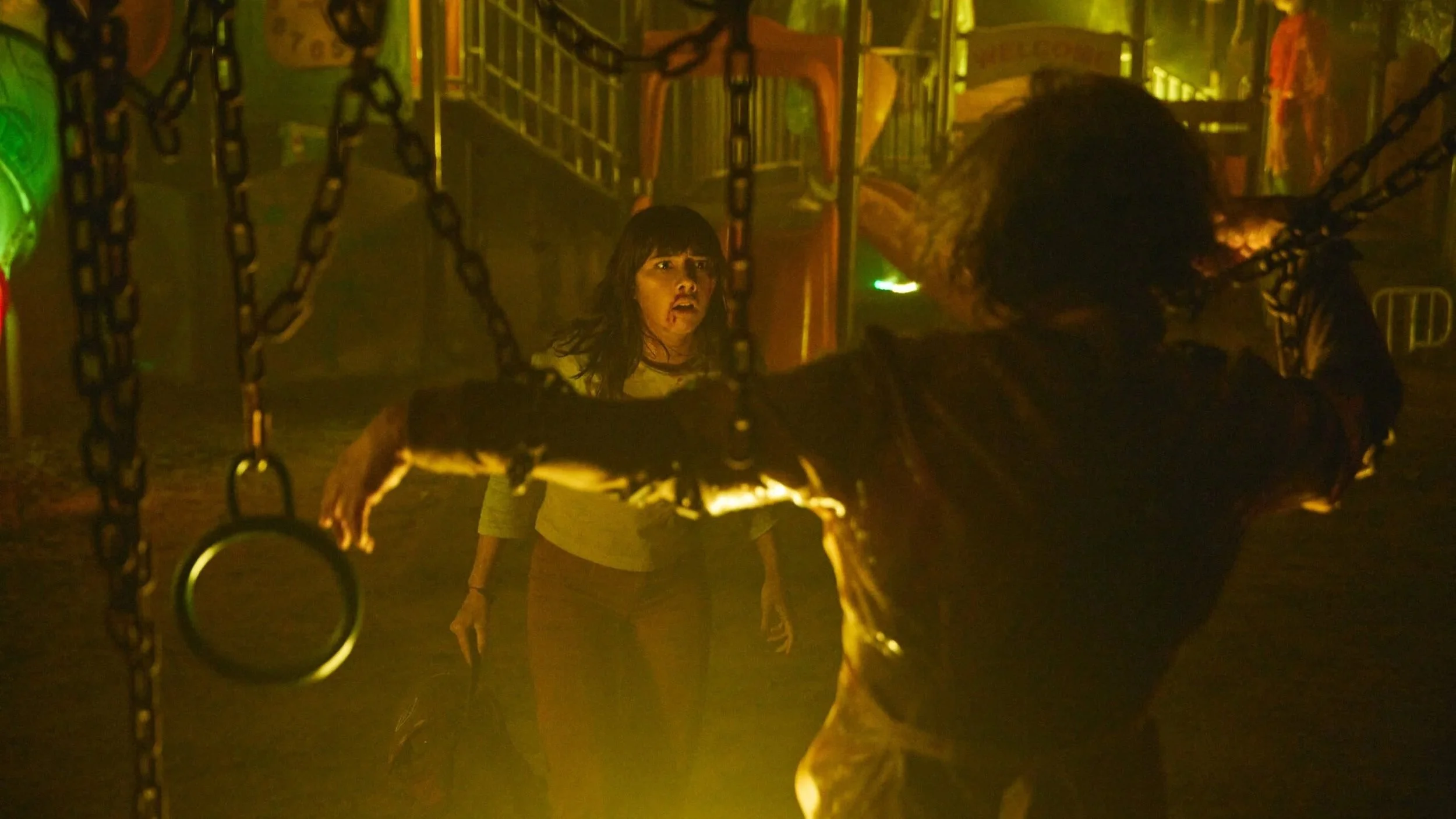 Originally a short film, Vargas and Gomez reunited to turn the horror film into a feature for Tubi. “The concept was fun. What if there was a horror film set in a playground? What if there was something going on with the children of this playground? But that's not a full movie, right? You need to take that little core and start building circles around it. A big one was, okay, there's this sibling dynamic that we're going to ground this in. There is an element of working class folks and what that experience is like. There's also a bigger world-building of this creature. What is in that tube slide? What is the terror that continues beyond?” Vargas told me. “Those were all things that we started to think about and it was great to be able to bring back Xochitl from the short film [and] to be able to welcome Aaron to the team. [It] made the feature so much bigger.”